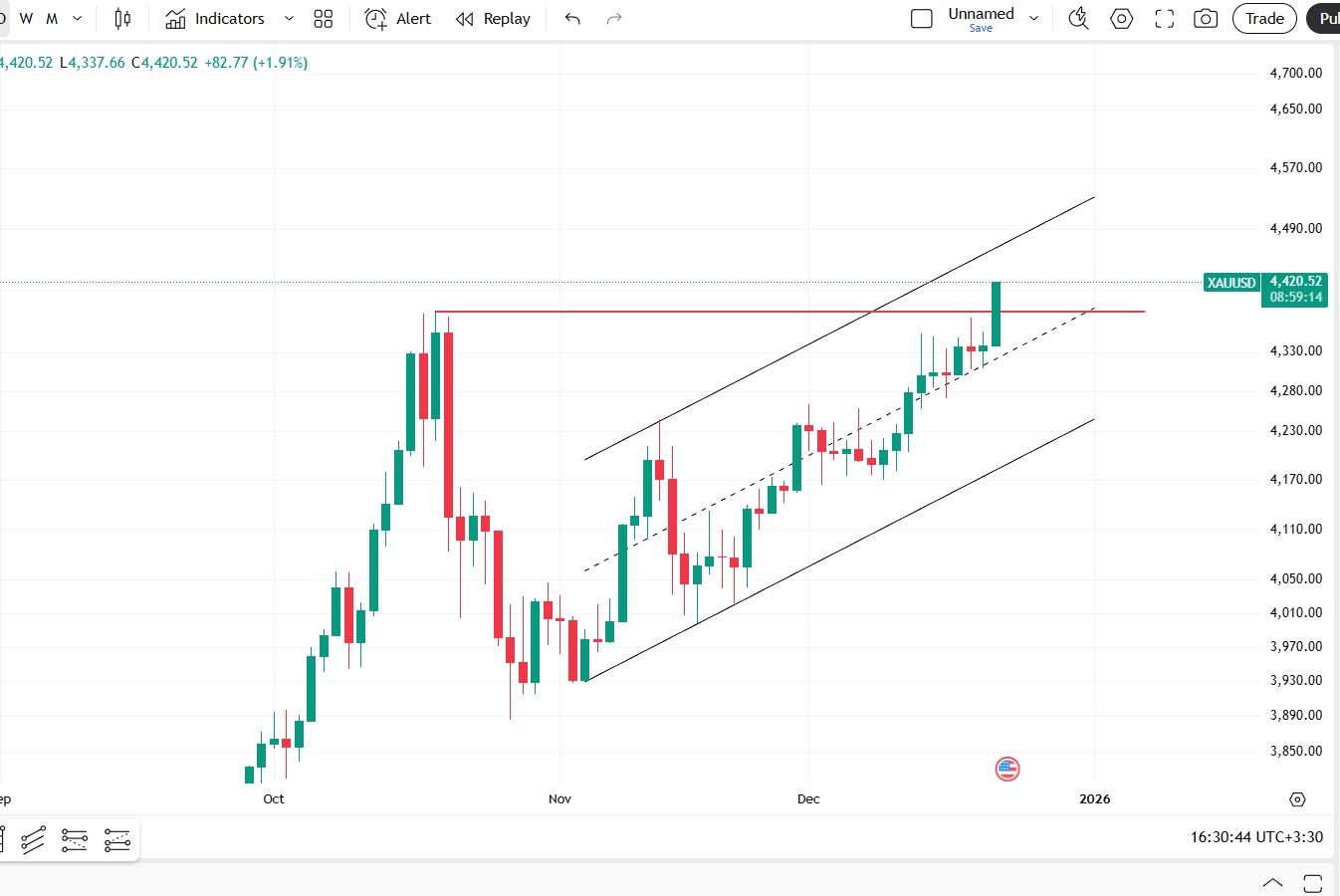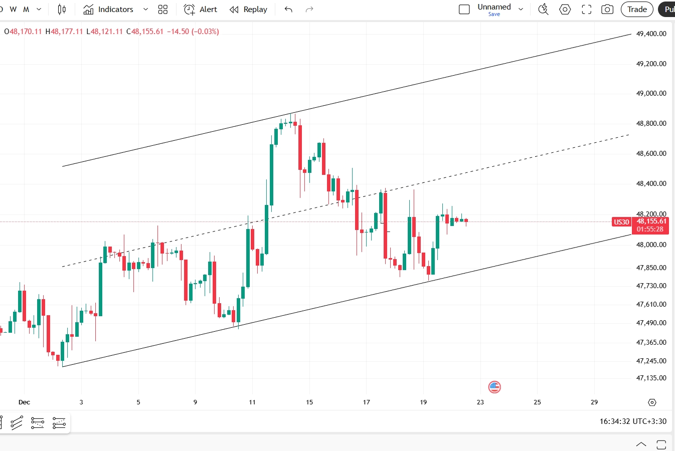 تحلیل داوجونز در تایم فریم 4 ساعته ( 2شنبه1 دی )